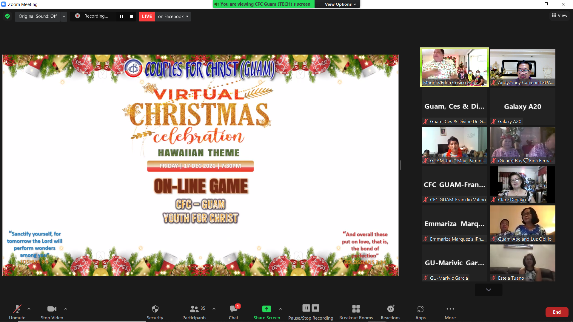 CFC-Guam, held its succesful virtual "CHRISTMAS CELEBRATION" last Friday 17th December 2021 which was streamed live via Zoom and Facebook.
